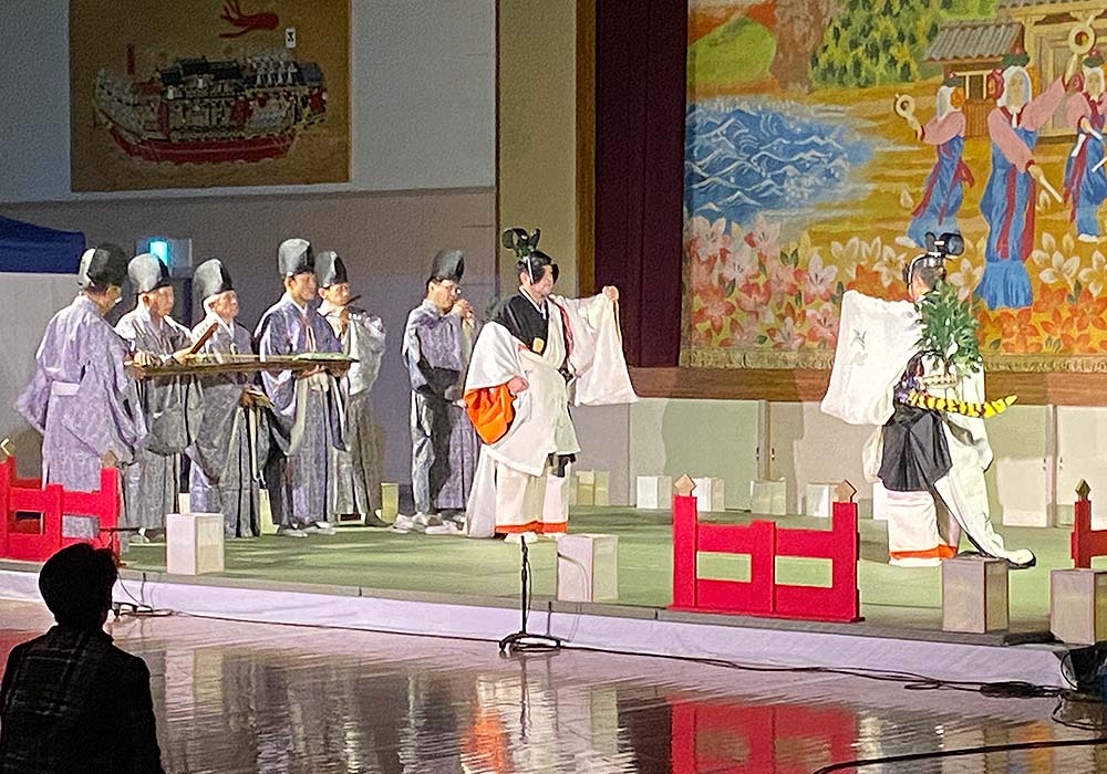 また、特別ゲストとして、対馬だけに伝わるとされる巫女神楽「命婦の舞」も披露され、会場全体が静かな感動に包まれました。