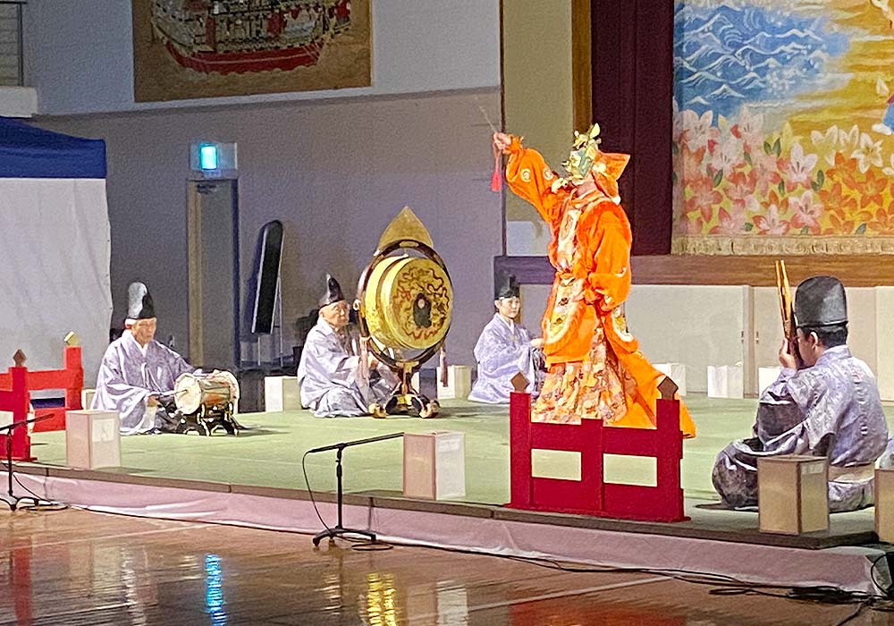 今回の公演で3回目となり、これまで和多都美神社(豊玉町)、豊﨑神社(上対馬町)で開催してきました。